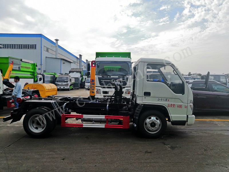 勾臂垃圾車又稱車廂可卸式垃圾車、拉臂式垃圾車,該車廣泛適用與城市街道**垃圾處理,可一車配備多個斗,各個垃圾點放置多個垃圾斗,帶自卸功能,液壓操作,方便傾倒。該車的箱體部分完全由液壓系統來**,在平日里可將車載垃圾箱放置到各個垃圾收集站,待垃圾收集滿后,該車可直接開赴**垃圾站,通過液壓系統的操控,可將垃圾車后座上加裝的勾臂放下,掛住站內垃圾箱前端的連接點,將垃圾箱拉**車體的后座上,此時即可啟動車輛,將垃圾運送**垃圾處理站內,進行自卸式傾倒。該車主要的優點就是可一車配多斗,一輛車就可以維持數個垃圾收集站的運轉,效率高,且箱體為密封式設計,不會造成二次污染。