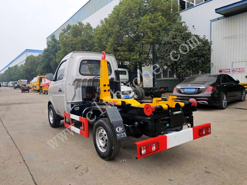 勾臂垃圾車又稱車廂可卸式垃圾車、拉臂式垃圾車,該車廣泛適用與城市街道**垃圾處理,可一車配備多個斗,各個垃圾點放置多個垃圾斗,帶自卸功能,液壓操作,方便傾倒。該車的箱體部分完全由液壓系統來**,在平日里可將車載垃圾箱放置到各個垃圾收集站,待垃圾收集滿后,該車可直接開赴**垃圾站,通過液壓系統的操控,可將垃圾車后座上加裝的勾臂放下,掛住站內垃圾箱前端的連接點,將垃圾箱拉**車體的后座上,此時即可啟動車輛,將垃圾運送**垃圾處理站內,進行自卸式傾倒。該車主要的優點就是可一車配多斗,一輛車就可以維持數個垃圾收集站的運轉,效率高,且箱體為密封式設計,不會造成二次污染。