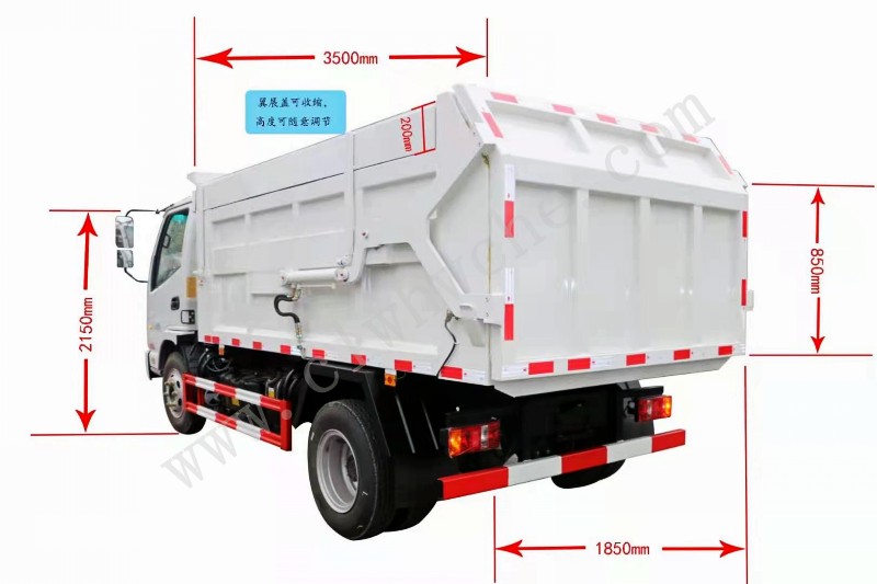 采用國標Q235碳鋼板制作,邊板2mm底板3mm.廂體容積5立方,弧形廂體,采用國內**品牌油缸、高密度高壓油管、多路閥和油泵,帶手動液壓**及PLC一健**系統填料壓縮,不帶后翻轉機構。箱體形狀方形,材質邊2底3碳鋼,箱體后門液壓開啟,油缸舉升自卸,頂部標配密封,可選裝頂蓋液壓側開啟、前劃開啟。