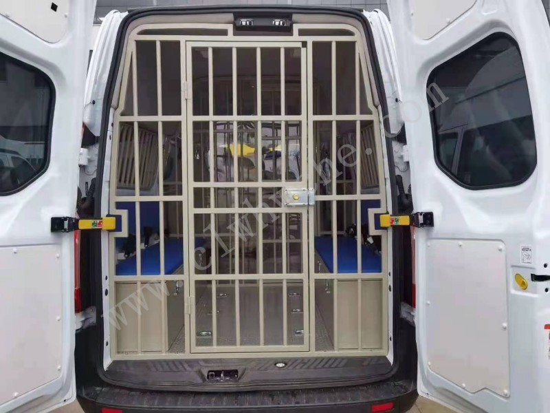 2、有條件的人民法院可以根據囚車類塑和安全需要,對囚車 進行標準化改裝.小型囚車押解艙座椅設置為縱向兩排,中型囚車押解艙應當劃分為**的羈押艙,毎個羈押艙應 當有單向啟閉裝置
