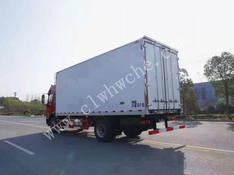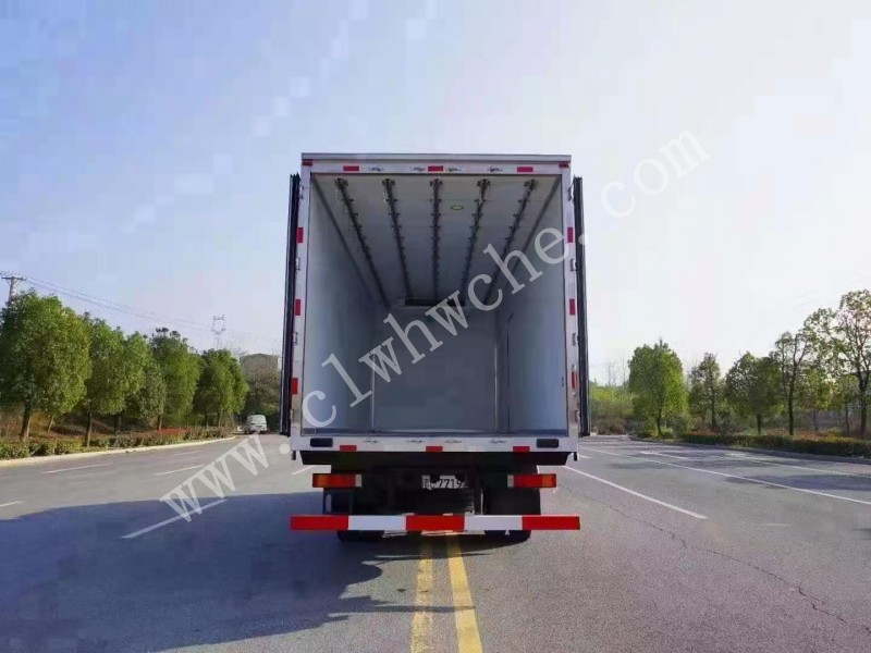 廂體全面采用優(yōu)質(zhì)玻璃鋼制造,樹脂膠無縫粘連,中間8CM厚聚氨酯保溫板,后門全密封雙開門,不銹鋼后門合頁及鎖件,廂體內(nèi)部采用LED照明燈及廂體示寬燈,品牌專用冷機、底板為防滑花紋鋁板。