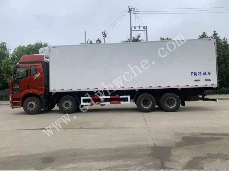 解放J6P型55方冷藏車(冷藏車)又稱為:冷凍車、保溫車、廂式貨車、防爆車、冷藏運輸車, 冷藏機組:分為**式和非**式,非**式冷藏機組利用汽車發動機動力工作,能使相匹配貨廂內**低溫度可達到零下18度。**制冷機組必須加裝**電瓶和柴油發動機,與非**式冷藏機組相比,它的制冷性能要好得多,能使相匹配貨廂內**低溫度可達到零下28度,而且不會因為汽車本身的故障原因而影響冷藏效果,但在生產造價上成本也要高些。