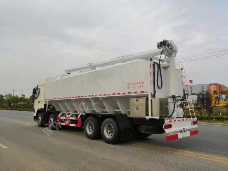 散裝飼料運輸車在裝卸及運輸過程中全程采用用密封設備,防止飼料與外界接觸,而目前通過普通貨車運輸或者袋裝運輸是無法達到的。